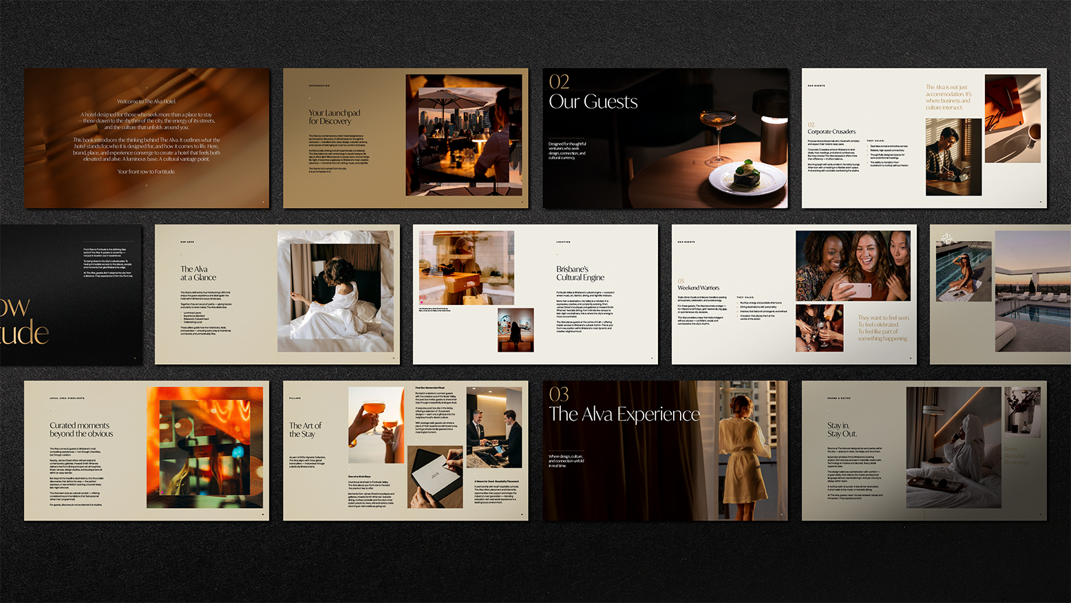 The identity and brand system were designed to balance energy with refinement. Guided by the idea “Front Row to Fortitude,” the brand places guests at the centre of Brisbane’s music, art, dining, and nightlife scene, while maintaining a sense of calm sophistication expected of an entry-luxury hotel.
